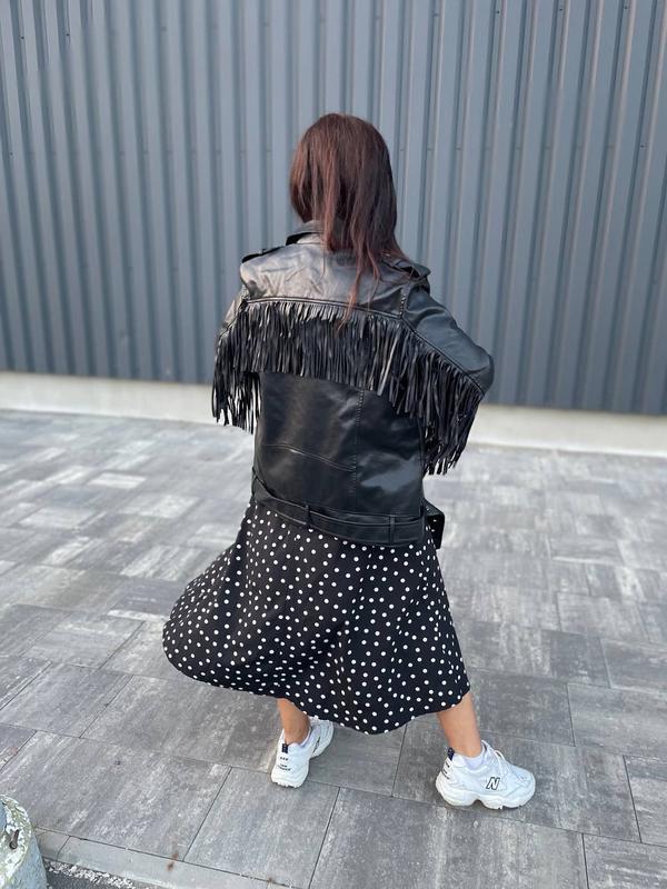🌺куртка искусственная кожа с бахромой качество люкс размер с,м,л,хл 1700 грн🌺С полу обхват груди 50 см, длина рукава от шеи 72 см, длина по спинке 65 см🌺 М полу обьем грудь 52 см, длин рукава от шеи 73 см, длина по спинке 66 см,объем бедер 53 см🌺 Л обьем грудь 56 см,объем бедер 57 см, длина по спинке 66 см. Длина рукава от шеи 74 см🌺Хл полу обхват груди 57 см, длина по спинке 67 см, длина рукава от шеи 74 см