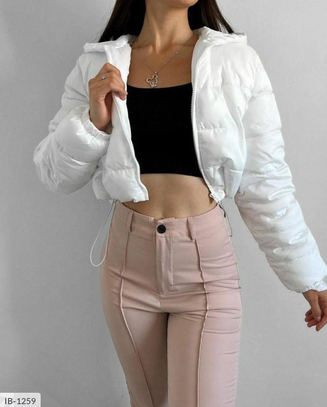Куртка IB-1262 Размеры: 42-44, 46-48 Ткань: плащевка Канада + синтепон 200 Цвета: черный, белый, малина, коричневый на синтепоне 200, внутри подкладка, по бокам затяжки