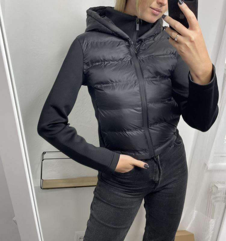 Стильная куртка пуфер, легкое наполнение Обновленная модель с капюшоном Рукава неопреновые В наличии XS S M L Большемерит, можно брать на размер меньше или в размер Внизу затягивается на резинку