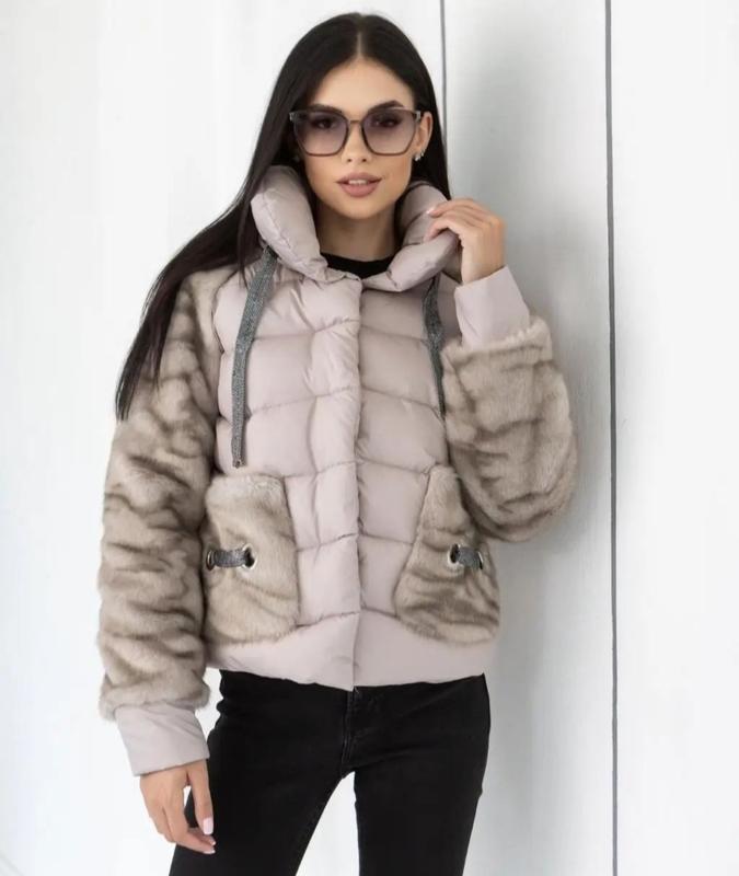 Куртка зимова автоледі Верх-водовідштовхувальна плащівка-Еммі Рукави,кишені-хутро штучне Наповнювач-біо пух. Захист від холоду-10 ° -30 ° Підкладка-100% поліестер Застібка:Блискавка +кнопка Заміри виконані по спинці виробу у застебнутому вигляді Розмір 42 розмір: НО грудей 52 см, НО талії 52 см, ловжина виробу - 57, довжина рукава- 72 см 50 розмір: НО талії 56 см, НО грудей 56 см, довжина рукава 74 см, довжина виробу 61 см Залишились 42, 50.