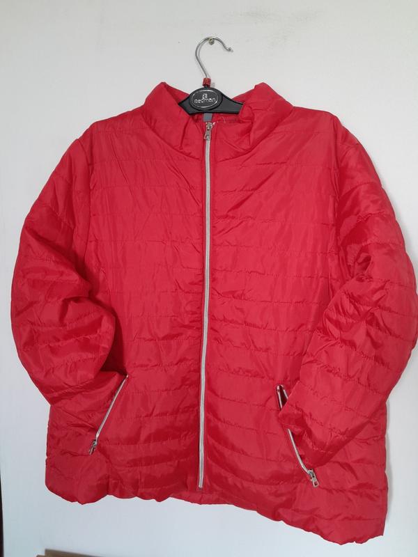 Новейший материал хорошего качествацвет красивый красный ( спокойный) на фото получилось ярче, чем есть. ЗАМЕРЫ: длина по спинке 67, плечи 47, боковая длина 37, ПОГ 63, ПОТ 60, ПО низу 66, рукав 68см, пройма 32, синтепон средней плотности.