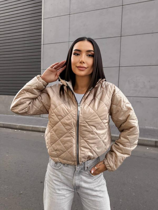 Куртка 10453/1 Стеганая курточка со стойкой, на молнии, с карманами на молнии, низ на резинке с затяжкой, рукав на резинке Ткань: плащевка «Эми», силикон 150, качественный подклад Размеры: с-м, л-хл Цвет: бежевый, мягко