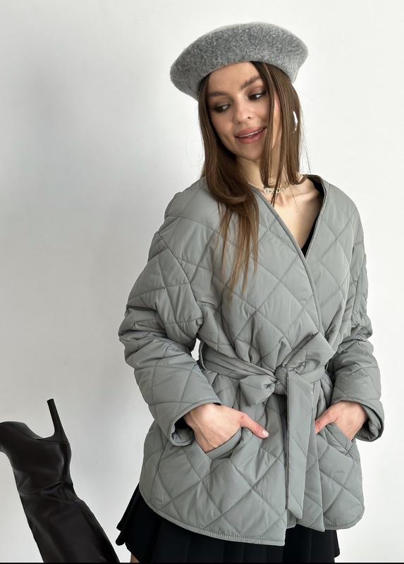 Стеганная куртка весенняя женская Без воротника. Застежка на кнопках,матовая плащевка на подкладке наполнитель (80) Хорошо смотрится с поясом и без него Модель « кимоно « с карманами Плечо спущенное Оверсайз Полномерная Размер М (44-48) и С (42-44) От горловины -77 см Рукав-55 см Спинка-59 см Длина-70 см В наявності у кольорах : Молочний Сірий Інші кольори під замовлення Чорний Капучино ❗️Під замовлення,по передоплаті 50%❗️