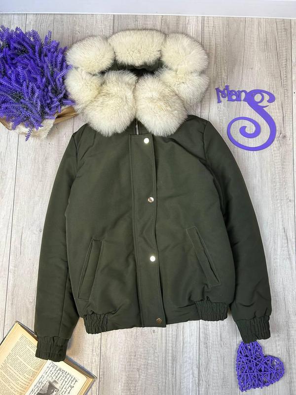 Женская зимняя куртка с капюшоном с меховой опушкой цвет хаки размер м (46)