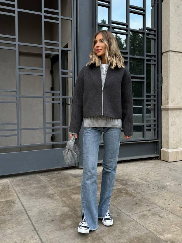 Стильный бомбер на молнии Стилизуйте его с классическими брюками, джинсами или юбкой. Благодаря свободному крою и универсальному цвету бомбер будет прекрасно сочетаться с любой одеждой. Размер: over size Материал: структурный кашемир (60% шерсть 40% полиэстер), жаккардовая подкладка Утеплитель slimtex +150грн (под заказ)