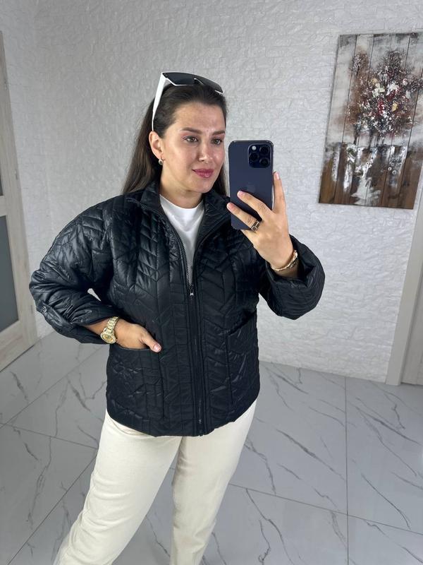 💘💘💘В САМЕ СЕРДЕНЬКО 💘💘💘 Универсальная, удобная курточка в ярких цветах с оригинальным узором, модель подойдет под брюки и платья, комбинируется под различные виды обуви 💘💘💘 Курточка Модель 983VL Цена : 1250 грн Размеры : 46-48,50-52,54-56,58-60 Цвета: желтый, белый, голубой, черный, хаки Ткань : стеганая плащевка (наполнитель синтепон, плотность 100), подкладка. Курточка на молнии в цвет основы, по бокам два кармана, регулируется длина рукава ( на патике с пуговицей), горловина устойчива. Параметры модели -нормы 98-76-106, рост 170см, на ней одет 46-48; параметры модели-балталл Инны 108-86-112, рост 165см, на ней одет размер 50-52. Замеры изделия по внешнему шву: Размер 46-48: Объем груди 112 Объем талии 106 Объем бёдер 106 Длина рукава от шва 36 Бицепс 42 Длина по спинке 63 Высота стойки 6см Размер 50-52: Объем груди 118 Объем талии 116 Обʼєм стегон 116 Длина рукава от шва 36 Бицепс 42 Длина по спинке 63 Размер 54-56: Объем груди 126 Объем талии 124 Объем бёдер 124 Длина рукава от шва 36 Длина рукава от горловины 69 Длина по спинке 66 Размер 58-60: Объем груди 138 Объем талии 134 Обʼєм стегон 134 Длина рукава от шва 36 Длина рукава от шва 68 Длина по спинке 67см