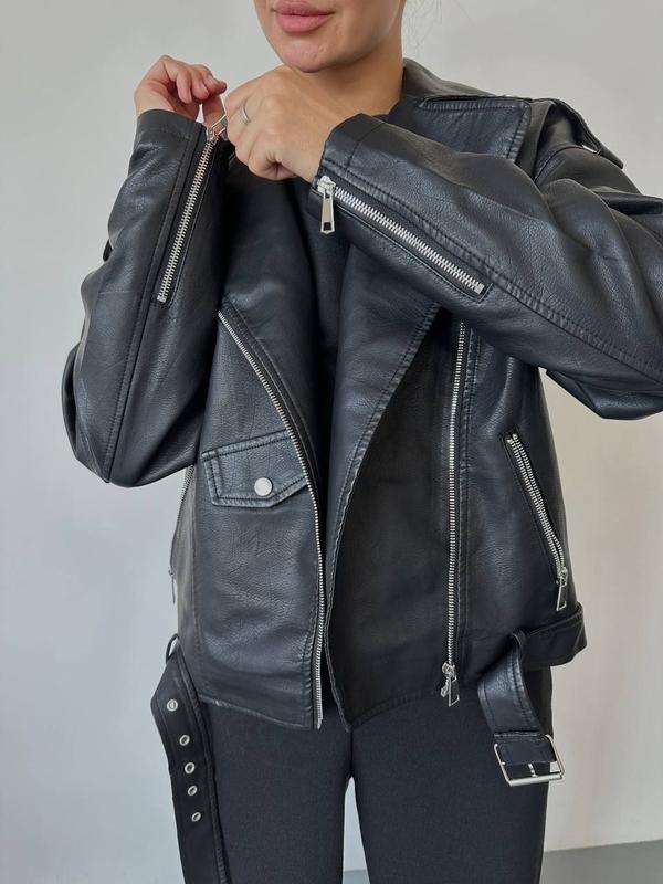 Куртка (осень,весная) ✔️Мод.708 ✔️Размер:42-46 oversized,48-52 oversized ✔️Ткань: эко кожа ✔️Цвет: черный Женская куртка (осень,весная)из качественной эко кожи на подкладке Цена 1270 грн
