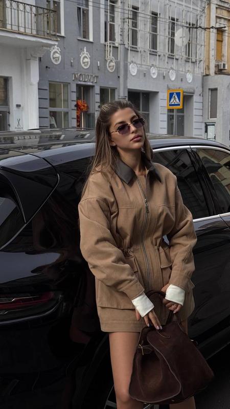 Style autumn🍂 Не отстаем от трендов 2024 года😎Куртка с интересным названием «Куртка рабочего», которая стала самой длинной в этом сезоне! 49 стилизовывать осенние образы за такой верхней одеждой стало еще ярче. Акцентный воротничок из эко кожи,на молнии,свободного кроя,але сделали затяжки на талии, для тех, кому нравится подчеркнуть эту зону❤️Объемные рабочие карманы и именно главное, это - крой,вин идеальной! Цена 2730 грн