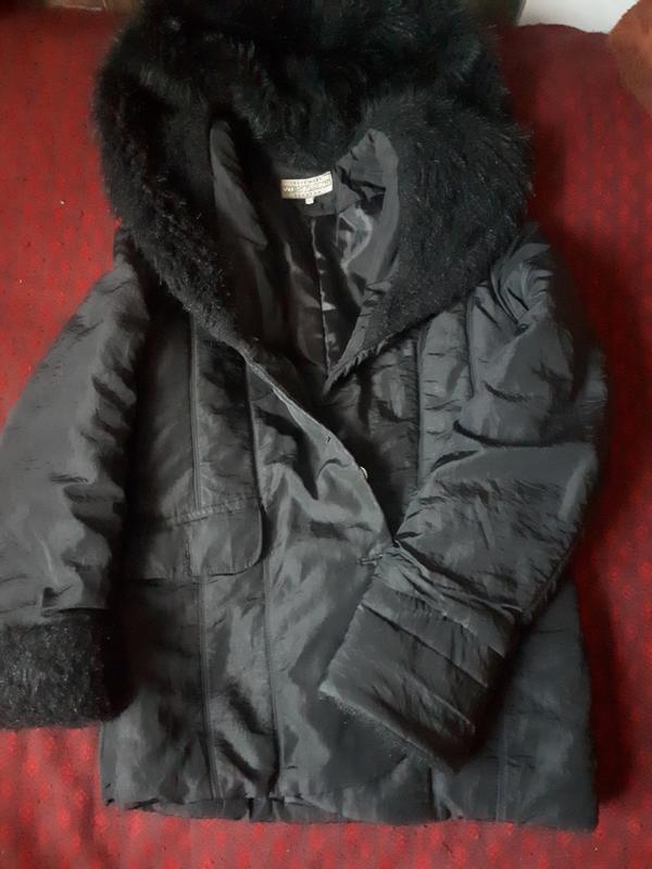 куртка зимова на гудзиках с капюшоном есть карманы размер М, небольшая Л ( хотя на бирке пишет 48 )