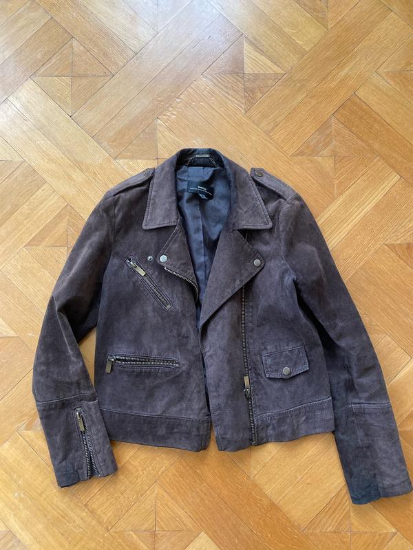 Замшева куртку, в гарному стані. Колір коричневий, тепліший відтінок ніж на фото.