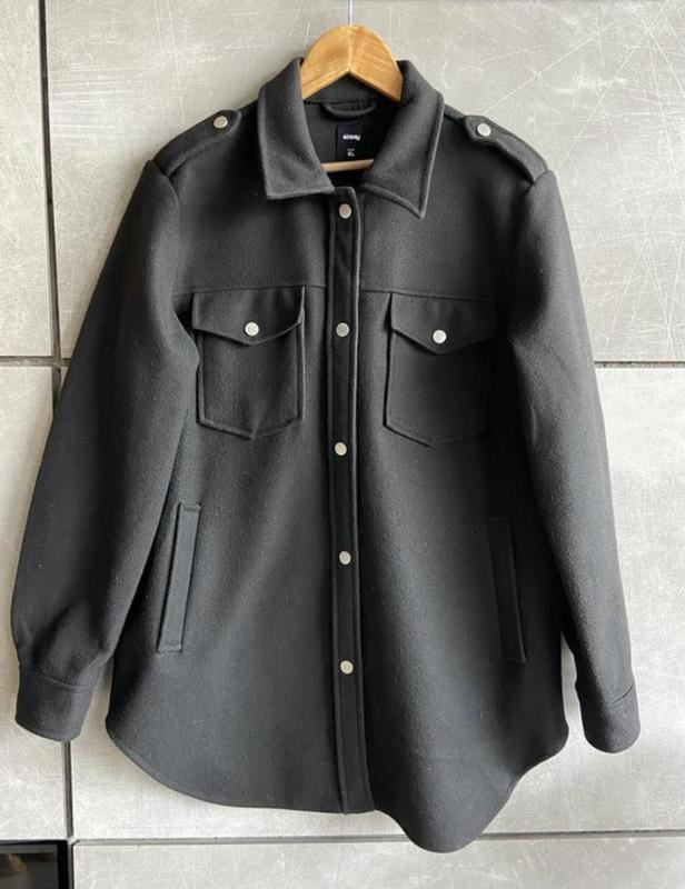 Удлиненная верхняя рубашка sinsay. Тканина схожа на пальтову. Полиэстер. Размер указан ХЛ, но маломерит. Длина 79 см, ПОГ 55 см, длина рукава от плеча 62 см, плечи 42 см. Есть карманы, можно носить с поясом (в комплекте пояса не было, но шлевки есть). Состояние хорошее, дефектов нет. Черный цвет очень тяжело фотографировать, виден любой волосок. Затежка Парковина112-го качества фото)