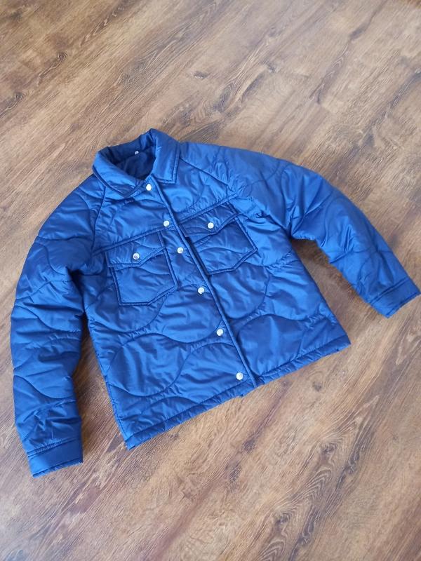 куртка осенняя. состояние отлично одета декилька разов. колir темно синий не как на фото. очень удобна на заклепках курточка.
