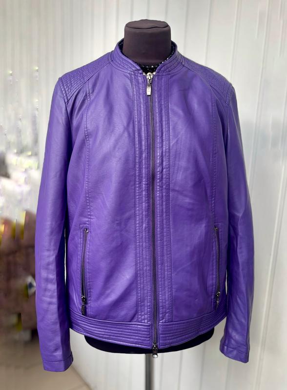 Невероятная куртка из веганко кожи (полиуретан) в идеальном (новом) состоянии. Можно гладить. качество на более высоком уровне!Италия. Силуэт ровный. По бокам и внизу рукава трикотажная вставка которая делает ее Oversized. SUPER! Подойдет от 48- 54 размера в свободном состоянии. Последнее фото -52 размер