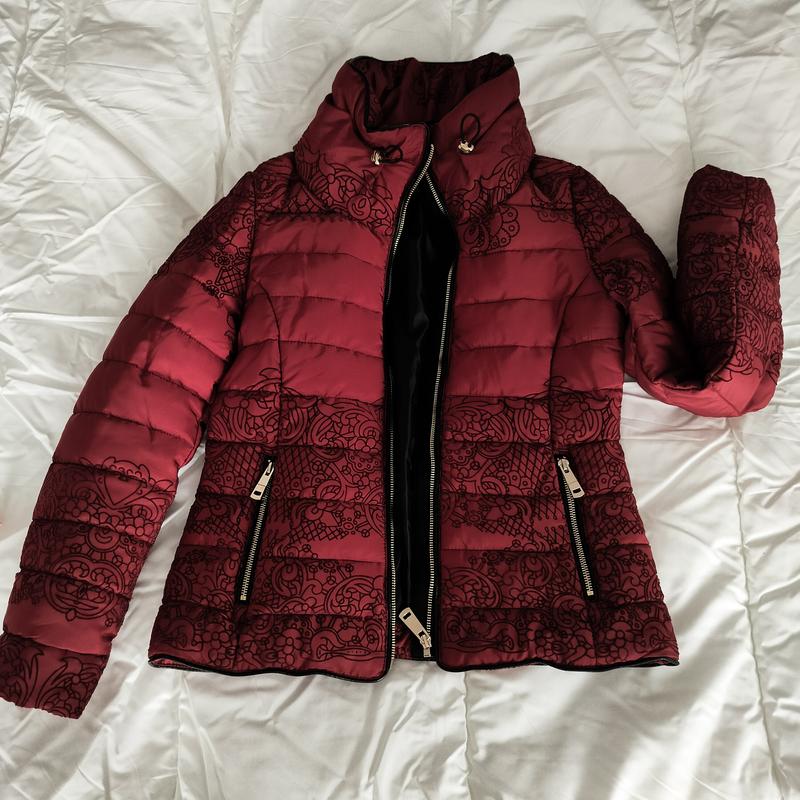 Новая приталенная курточка вишневого( темно-красного) цвета. Жодного разу не носилась. Пог 48 Пот 44 Полуобхват по низу 51 Рукав 61 Плечи 39 Длина 55см