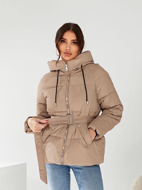 Куртка Размеры: S M L XL 2XL Цвета: черный, бежевый. Тканина: плащівка, наповнювач - холлофайбер 200. Стильная куртка прямого кроя с поясом, который подчеркивает талию.9/1 Застегивается на молнию, имеет практичные два кармана, большой капюшон и качественную фурнитуру. Фактические замеры изделия по снаружи, при подборе размера учитывайте запас, рекомендуемый запас ~ 6см от измерений. Цена: 1640 грн