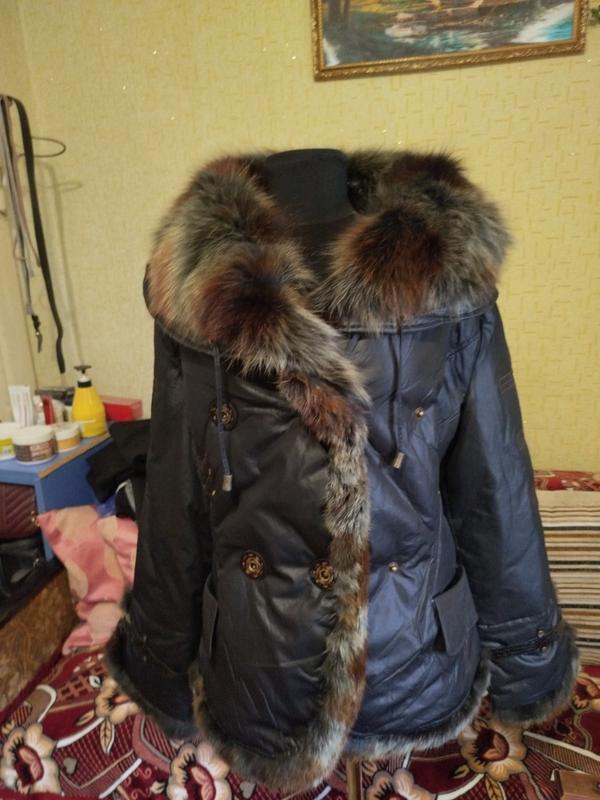 Новая Зимняя Очень крутящая.Натуральный мех. На кнопкахкая очень навороженная ткань (не понимаюсь на этом) не продувает и не промокает.Думаю, что пух-перо(смотрите на этикетках информацию).Очень изысканная.Замеры которые нужны, запить, с удовольствием ответная.Приехала издалека, но не угадали с размером .Брендова. Мех на вороте снимается