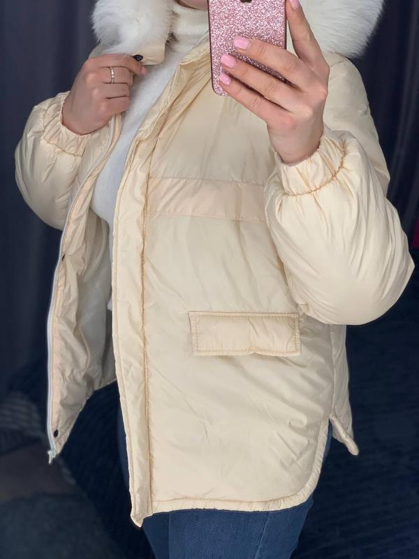 Бежевая молочная куртка парка с натуральным мехом песца