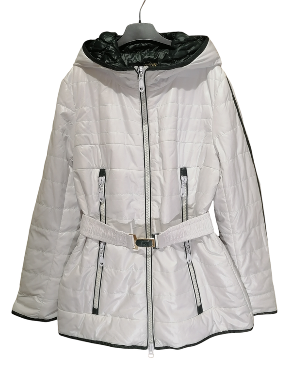 Куртка белая женская для сезона весна и осень. Имеет пришитый капюшон, два кармана боковые, застегивающиеся на замок-молния, и один внутренний. Рукава имеют трикотажный манжет, и манжет сверху, который можно завернуть. Есть пояс, содержащий внутри резинку. Куртка очень хорошего качества, приятная на ощупь. Производитель Турция. Верх - мягкий баллон. Внутри утеплитель - финсулейт. Подкладка - полиэстер. Замеры: В плечах - 39 Длина - 70 Рукав - 60 ОГ - 96 ОТ - 84 ОБ - 100 Замеры выполнены по верху куртки. Куртка новая - это распродаж из закрывающийся бутика.