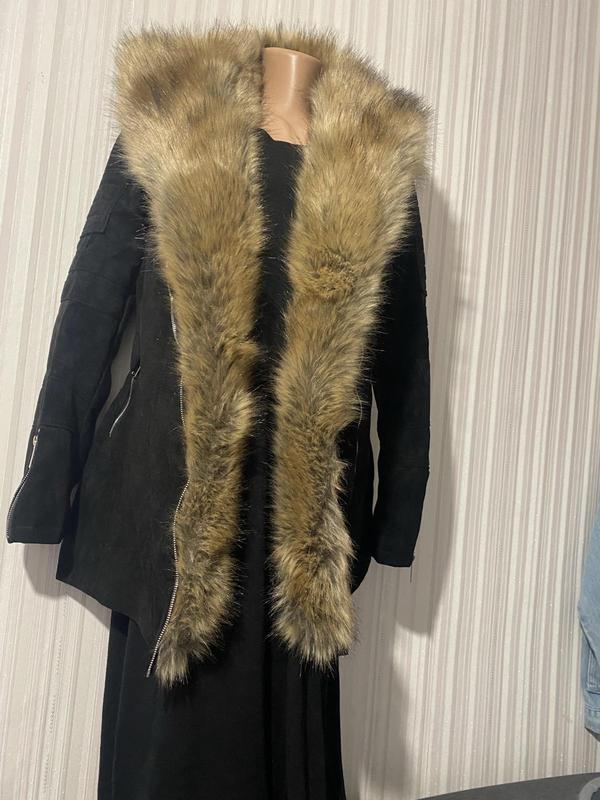 Новое пальто, с этикеткой, мех снимается, ткань под замш, не утеплённая