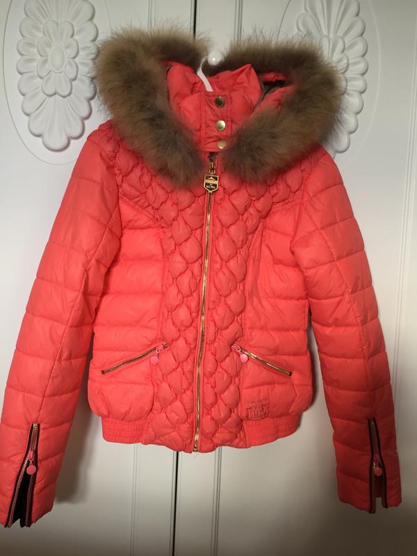 В груди 48, в талии 42, по низу 43 в спокойном состоянии, плечи 44, длина по спине 60, рукав 65. Мех натуральный на кнопках. Красивый лососевый цвет, в жизни спокойней, нежнее.
