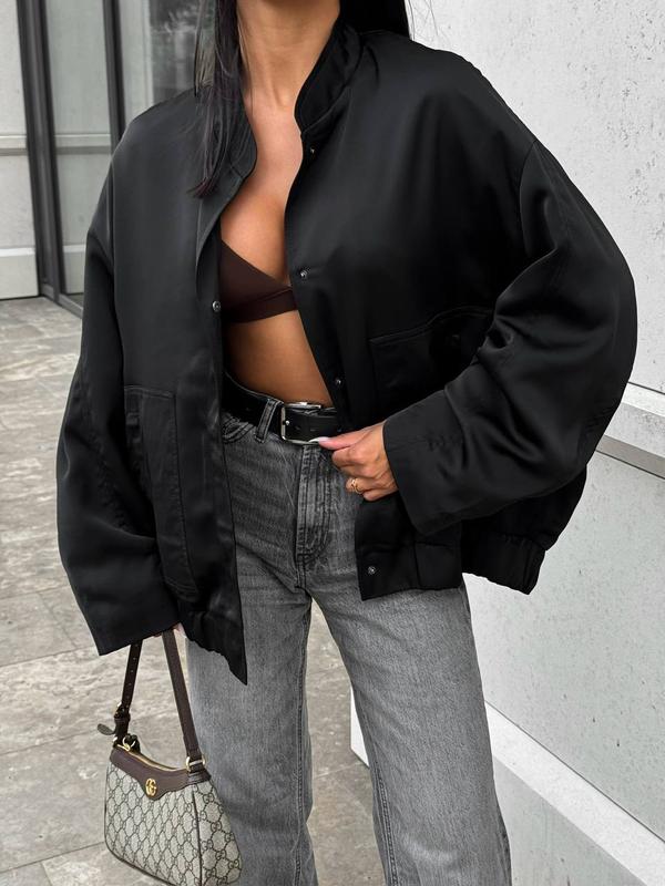 Бомбер 1165 грн Размер : One/Size Ткань сатин на подкладке Длина по спинке 74 см Плечо 21 см Длина рукава 54 Цвет пудра, шампань est