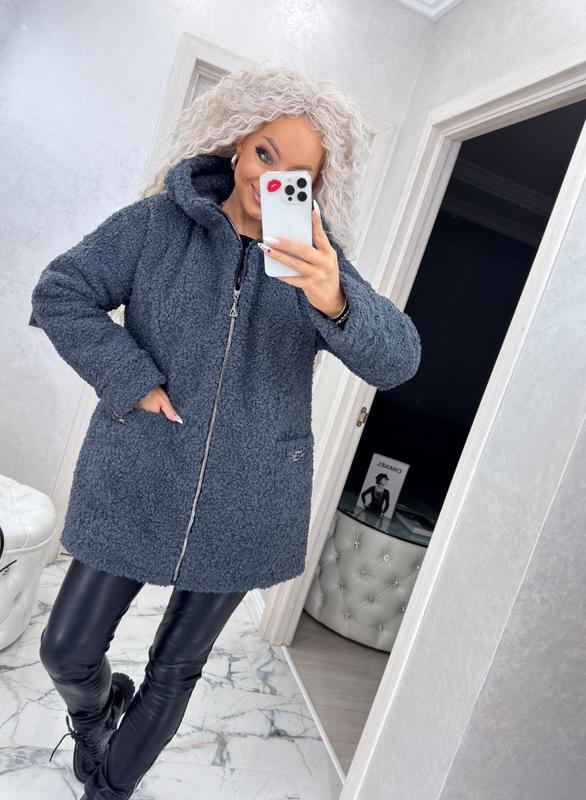 Куртка на дубляже Зимняя Мех высокой плотности НА ДУБЛЯЖЕ, очень теплый, на подкладке "Паянка". Дубляж имеет двустороннюю фактуру, одна сторона – бархатный, плотный замш, что максимально имитирует натуральный, другая – объемный, мягкий искусственный мех каракуль. Ткань теплая, прочная, при этом имеет невероятно красивый внешний вид. Подкладка с прессованным синтепоном 100г/м2. Подкладка на синтепоне (Паянка) – это полотно, состоящее из ткани (подкладка) и нетканого полотна (утеплителя-синтепона), производимого путем термоскрепление и нанесения тисненого рисунка. "Паянка" обладает высокими свойствами удерживать тепло, при этом очень легкая, но прочная и не деформируется. Теплый высокий ворот, что защитит от ветра и холода. Двойной капюшон. Два рабочих кармана. Идеальный вариант под джинсы, брюки, лосины, юбку - полу классический вариант на каждый день. Размеры: 46-48, 50-52, 54-56, 58-60 Замеры на последнем фото! Цвета: графит, мокко, черный Цена: 1650 грн