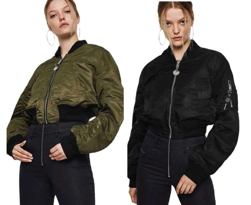 Женский укороченный двусторонний бомбер куртка G-Manua Giacca Diesel Оригинал Без утепления Укорочений Двусторонний Сделано в Китае Модель: 00SUI3-0KAUX-9XX G-Manua Giacca Размер: M 175/88A Состав: 100% нейлон Резинка: 61% акрил, 27% вовна, 11% поліестр, 1% еластан Измерение: (1) пог-60 низ-38 длина по центру спинки без стойки-40 длина спереди от горловины-50 рукав -65 плечи+-49,5 Измерения могут иметь погрешность 0,5 см Вес-885г