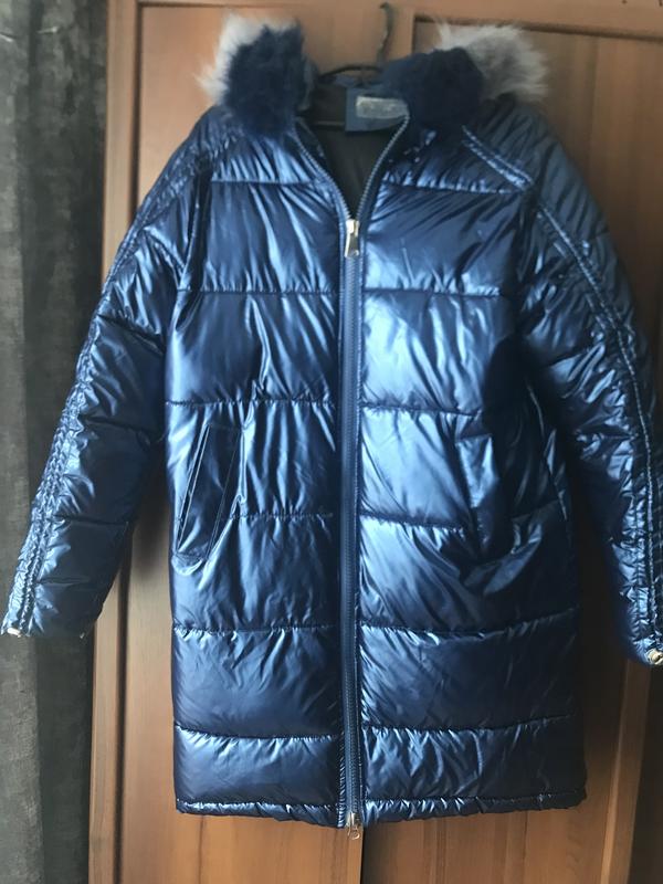 Подовжена зимова куртка в ідеальному стані. Тканина плащівка-металік. Колір електро-синій. Дуже тепла та легка. Наповнювач: якісний незбитий синтепон. ПОГ 60, ПОС 58, довжина спереду 90, ззаду 95