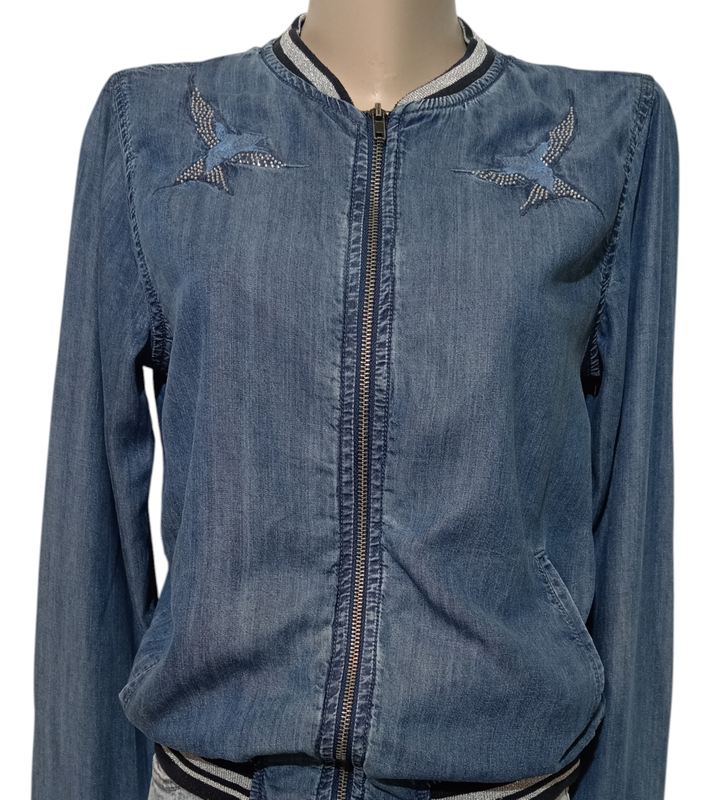 Бомбер легкий, из лиоцелла (вискозного волокна). Застёгивается на железную молнию. Производитель Турция. Состояние идеальное. Размер указан 36. ✔️ плечи 37 ✔️ ПОГ 51 ✔️ ПОТ 52 ✔️ длина рукава 64 ✔️ длина. 59