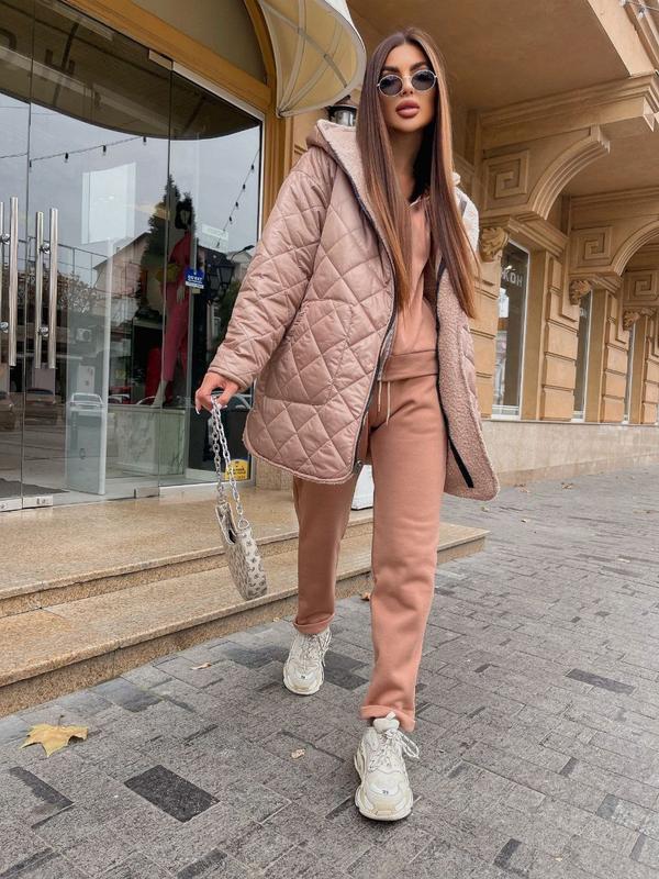 Куртка двусторонняя Размер 42-46 Беж, хакі Ткань плащевка стеганая (синтепон 150), теди