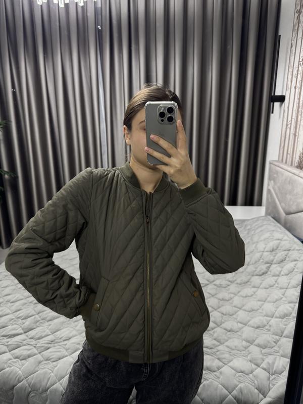 Бомбер h&m колір хакі Розмір s Стан хороший 7 з 10, є невеликий нюанс з внутрішньої сторони (ост фото) Без утеплення, тоненький Довжина від плеча 55 см Рукав від плеча 61 см Пог 50 см