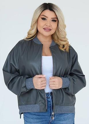 Куртка-бомбер Будь завжди стильною! # 467 👉Розміри 52-56,58-62 👉Тканина високоякісна екошкіра на замші! 👉Кольори. Чорні, сірі, коричневі та молочні + вставка розинка ребана турецька Дуже крута і Стильна річ, підійде на будь-яку фігуру! Потрібна в гардеробі кожної модної дівчини! Фотто Реал 52-56 О/г140 Рукав 66 О/б 130 манжет с разрезами Спинка 65 Полочка 60 см 58-62 О/г 155 Рукав 70 О/б 145 манжет с разрезами Спинка 70 Полка 65 см