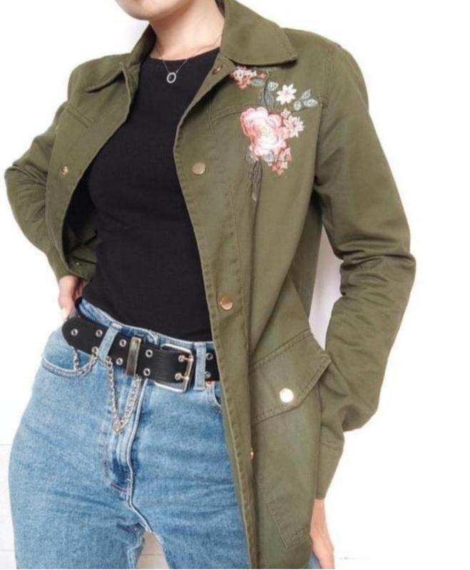 Классная куртка хаки с вышивкой. Очень удобная, ткань приятная. 🌿Замеры: длина 64 рукав 59 см пот 45 см объем груди до 80 см ✅ КОЖЕНЬЯ ПОВЕТНЫЕ ЦЕНЫ - ПЕРЕХОД В ПРОФИЛЬ 😉
