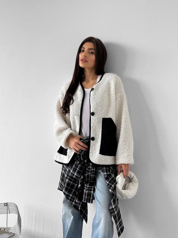 Бомбер ▪️Артикул: G1462/0108 ▪️Размир: 42-46, 48-50 ▪️Ткань: баранец ▪️Цвет: ▫️молочный+черный ▫️черный+черный ▫️беж+черный ▪️Цена : 1500 грн есть наложенный платеж с предоплатой 🌸