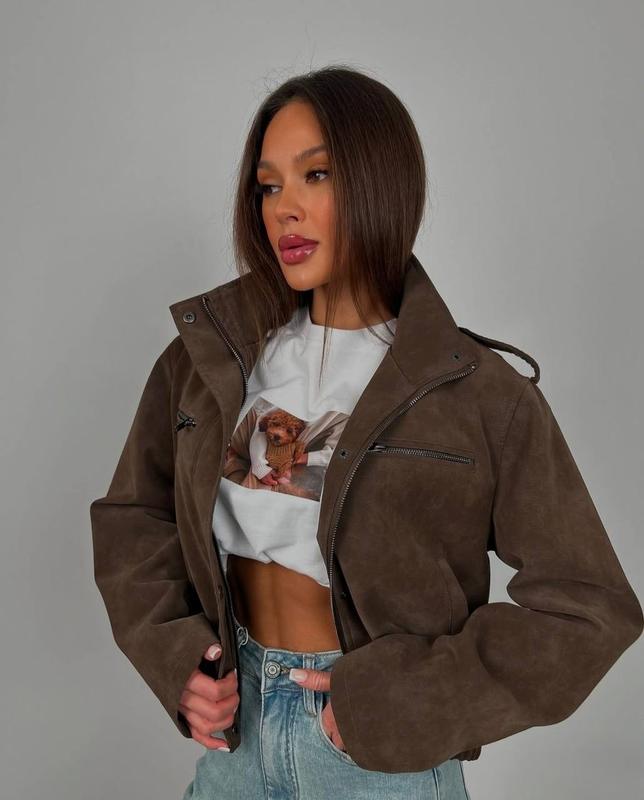 🖤NEW🖤 NEW🖤NEW🖤 Бомбер # 1214 Цена: 1295 грн!!️‼️‼️ Размеры: 42,44,46 Тканина: еко-замша Цвет: черный,серый,бордо,шоколад Фабричные Код20-2755(ТГен)