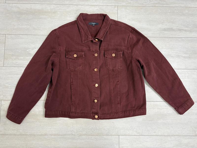 Жіноча джинсова куртка трендового кольору бургундія розмір м 44-46