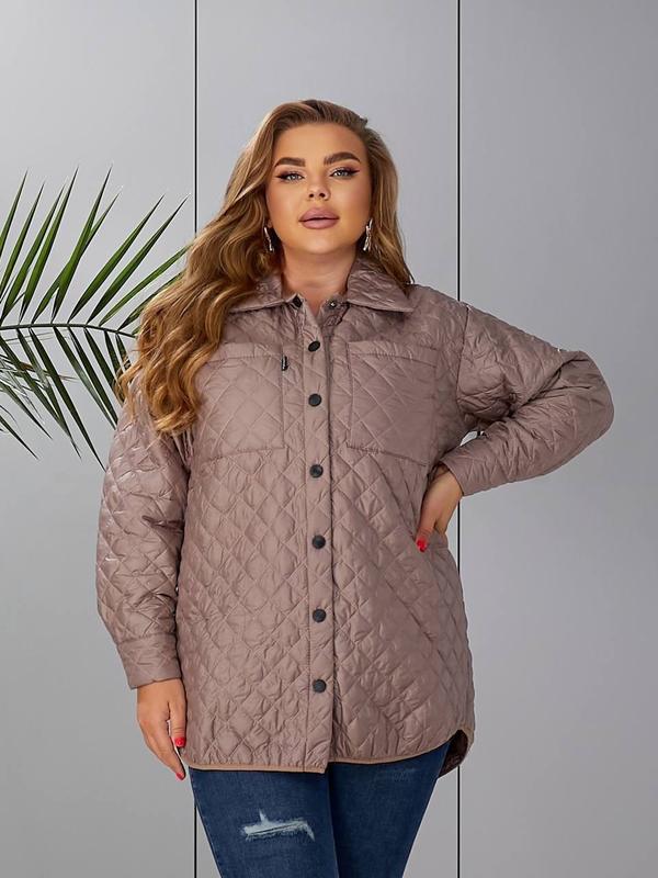 Модная стеганая рубашка благодаря универсальности и свободному крою стала настоящим фаворитом среди демисезонной одежды. Она сочетает лёгкость с хорошо выраженным согревающим эффектом Модель 20014 Женская утепленная Ступена куртка свободного кроя на кнопках с воротником Ткань: Эмми простушка с двух сторон на 100 синтипон. Размер: 48-52,54-58, 60-64 Отличное качество пошива. Цвета: Черный, мокко 48-52 Обхват груди 128 Обхват стегон 130 Длина рукава от горловины 0.76 Длина изделия по спине 0,88 Длина изделия по полке 0.81 54-58 Обхват груди Обхват груди 142 Обхват стегон 146 Длина рукава от горловины до манжета 0.76 Длина по спине изделия 0,89 Длина изделия по переду 0,81 60-64 Обхват груди 150 Обхват стегон 158 Длина рукава от горловины 0.76 Длина изделия по спине 0,91 Длина изделия по полке 0.85 На модели размер 48-52