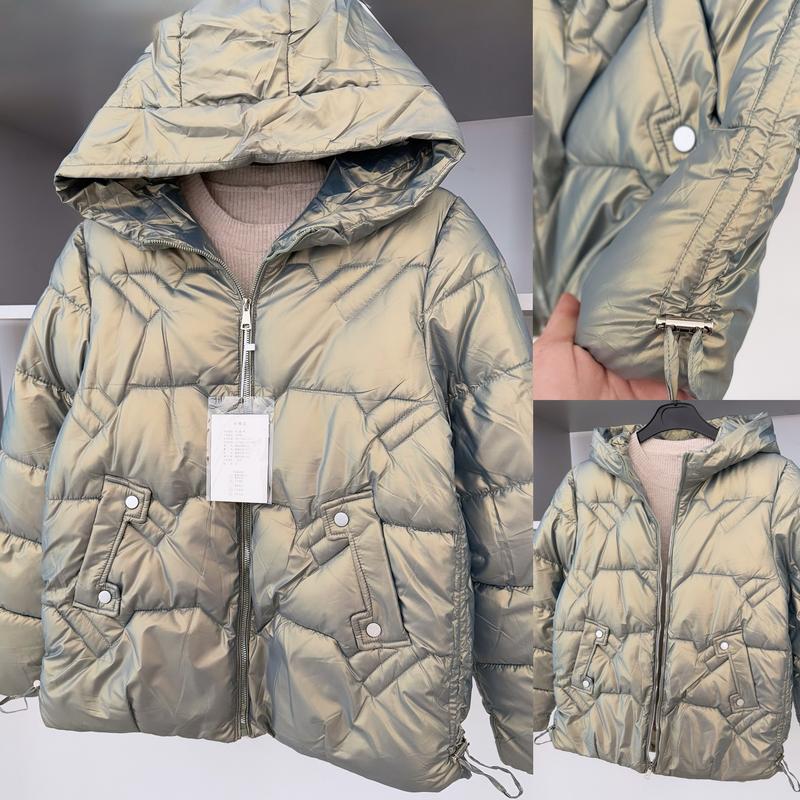 Качественные весенние курточки с капюшоном. Цвет хамелеон серебряно-зеленый💚 Ткань не промокает, Наповнювач холофайбер Размеры м-хл М: ПОГ 47, рукав от горловины 71, длиннее 60 Л: ПОГ 51, рукав 72, длж 62 Хл: ПОГ 54, рукав 73, длиж 64 Ххл: ПОГ 56, рукав 74, длиж 66см Цена 950грн🔥🔥🔥