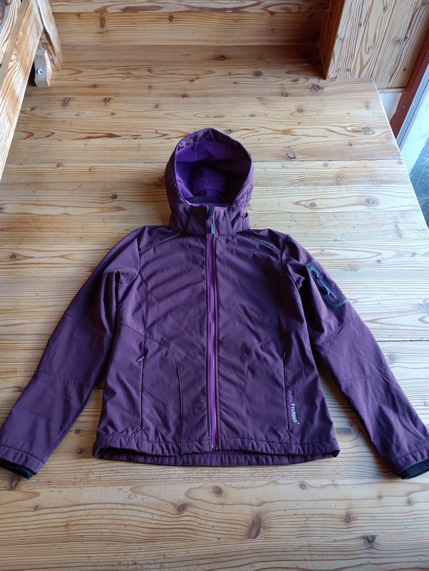 Женская ветровка с капюшоном, который крепится на молнии итальянского бренда.Стейка к ветру и дождю.Размер S.Замеры: плечи плечи 42 см, пог 46 см, длина рукава 61 см, длина куртки 59 см