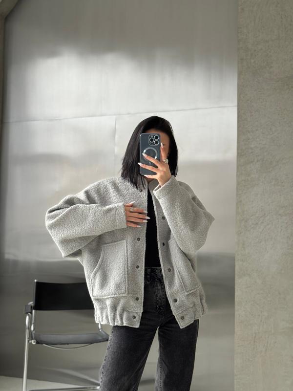 Бомбер на весну арт. sof. 9028 Размеры: 1(42-44), 2(46-48) Бомбер оверсайз, по низу резинка на кнопках Ткань: баранец Цена 950 грн