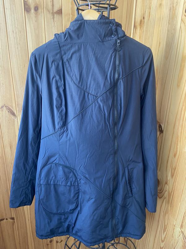 Куртка с наполнителем, до сих пор тепла к -5,темно-синяя, цвет как на последнем фото. Длина 82, рукав67,плечи42,пог52,пот49, поб57