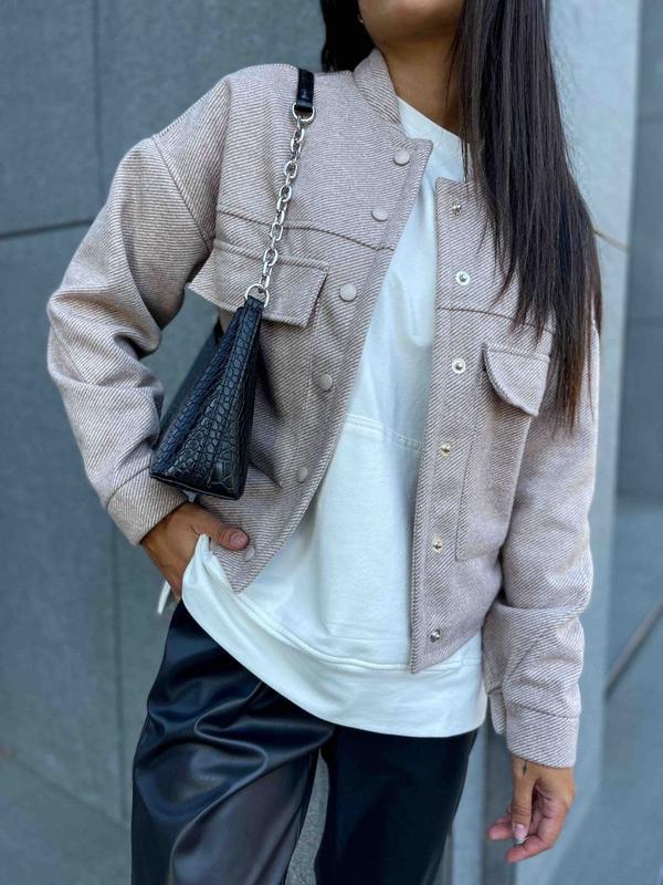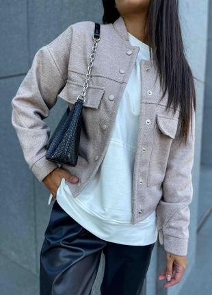 Куртка бомбер Модель -1120 Ткань: шерсть диагональ подкладка Отличное качество! Размеры: -42--44--46 КОЛЬОРА:серый , беж, айвори Бомбер на заклепках, с не ржавейки