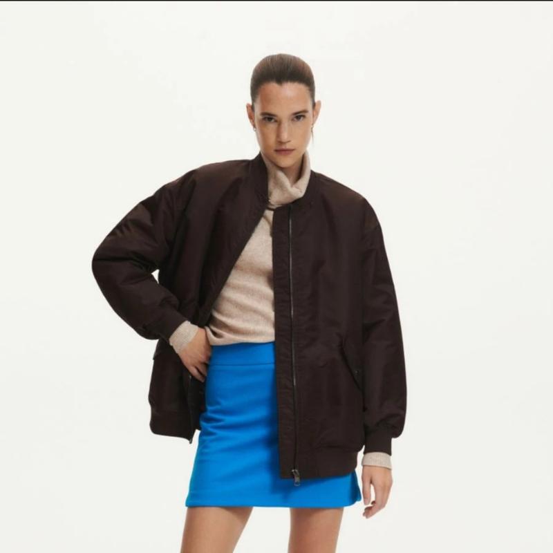 Бомбер темно-зеленого ( бутилочного) цвета,глубоки и насыщенный,на сожалению, фото не передает цвет.В отличном состоянии. Крой оверсайз ( но не слишком), опущенная линия плеча.Длина по спинке 66 см.
