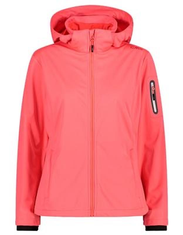 Жіноча легка куртка softshell зі знімним капюшоном Легка весняна куртка CMP Softshell без утеплювача. З легкого софтшелла зі знімним капюшоном, ідеально підходить для весняних прогулянок як в горах, так і в місті. Її вага становить всього 180 г/м2. Тришарова структура тканини і спеціальний теплоізоляційний мікропористий шар Clima Protect роблять цю куртку вітро-, водонепроникною і дихаючою. Легка, яскрава, дуже красива і зручна. В реале яскравіше ніж на фото сайта. Нова, без паперової бирки. Італія.