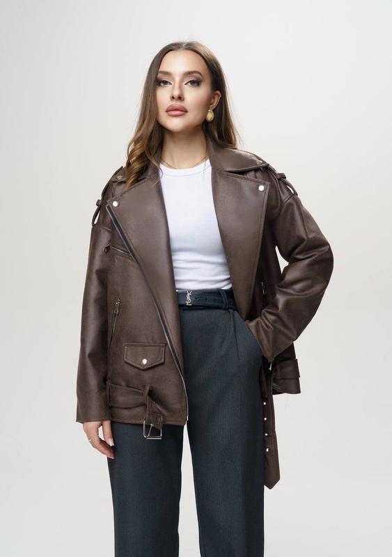 Косуха Оверсайз🔥 в трендовом цвете под натуральную винтажную кожу Качественный материал и идеальный крой🙌🏼 Идеально садится на все типы фигур 🤍 Цвета: графит, черный, шоколад, светло-серый xs ОГ - 74-84 ОТ - 52-60 ОБ - 82-86 Рост 155-165 s-m ОГ- 84-94 ОТ- 60-70 ОБ - 86-96 Рост 160-172 m-l ОГ- 94-104 ОТ- 65-75 ОБ- 96-106 Рост 165-175 xl ОГ-104-112 ОТ- 75-90 ОБ-106-114 Рост 165-175