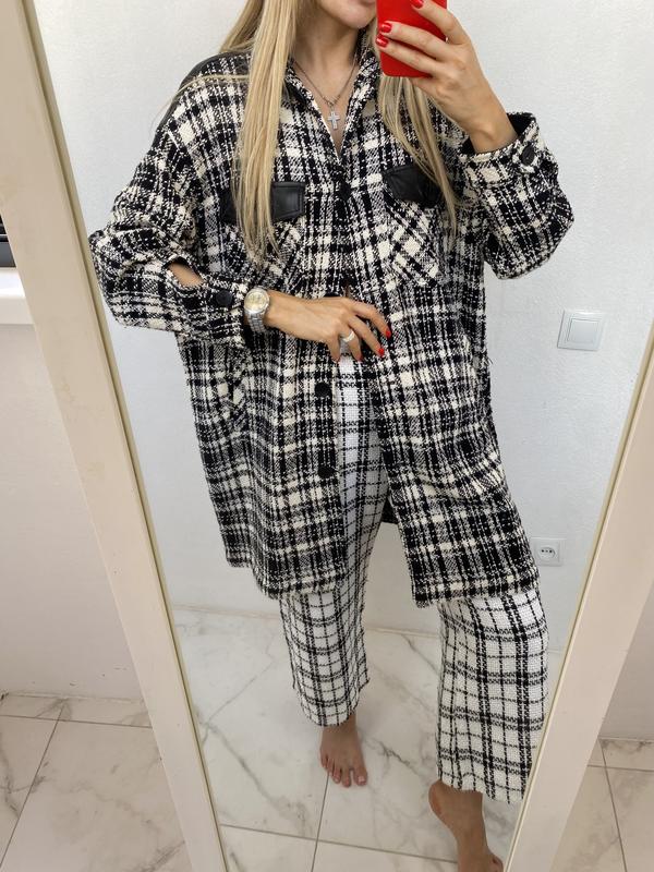 Стильная и всегда актуальная рубашка в клетку с отделкой из искусственной кожи В отличном состоянии, без дефектов Возврата и торга нет