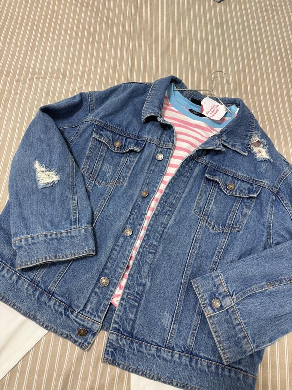 Красивая трендовая молодежная джинсовка🔥 З потертостями С принтом на спине😍