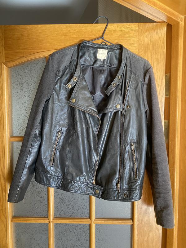 Куртка з натуральної шкіри з текстильними вставками. Шкіра мʼяка, середньої щільності. Колір чорний. Розмір невелика М. Фурнітура повністю робоча. Шкіра в ідеальному стані без нюансів, частина з текстилю має мінімальні сліди носіння на рукавах, видно на останньому фото (в ціні враховано).