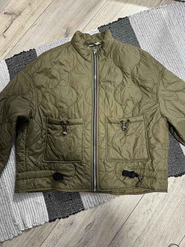 Легкая и удобная, нюанс на фото, следует подшить резинку на кармашке. Цвет хаки. Плечи спущенные, рукав 48 см, пог-58 см, ширина по низу 56 см, можно стянуть. Длина 57 см