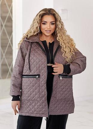🔥🔥🔥Новинка 🔥🔥🔥 Куртка 0020051 Размер:48-52,54-58,60-64 Цвет: черный, мокко на Ткань :Эммы простые с двух сторон на 100 синтипон Цена 1360 грн Женская стильная куртка на молнии идеальна для Весенней погоды. Она имеет длинные рукава и капюшон, что придает удобство и защиту от ветра. Куртка оснащена карманами на молнии. Эта куртка станет отличным дополнением к вашему гардеробу, подчеркивая ваш стиль и практичность. На моделы размер 48-52 48-52 Обхват груди 142 Обхват стегон 146 Длина изделия. 76 см. Длина рукава 0.65 54-58 Обхват груди 148 Обхват стегон 150 Длина по изделию 0, 76 Длина рукава 0.65 60-64 Обхват груди 154 Обхват стегон 156 Длина по изделию 0,76 Длина рукава 0.65